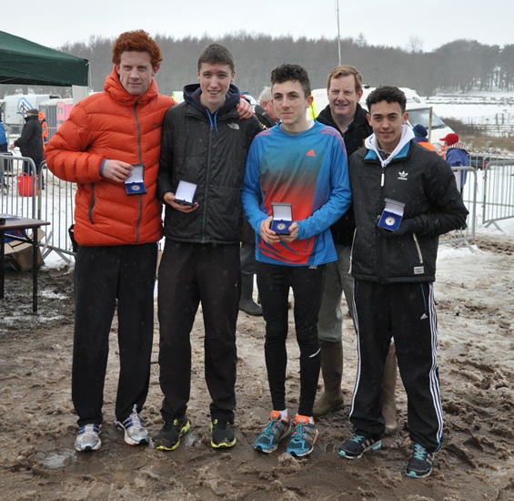 Knowsley Safari Park. It was a triumph of organisation for the Merseyside hosts, delivered in style. The venue, accessibility and organisation drew plaudits all round and only a handful of clubs failed to get there. From a Liverpool Pembroke Sefton point of view the Junior Under 20 Men was the most exciting race. The club was expected to medal but the competition was fierce and the team race see-sawed throughout. Both Toby Loveridge and Jai Vernon-McGuigan were quick to establish themselves in the leading group and were possibly astounded to find themselves in the company of W Ghebresilasie of Ethiopia, an Olympic finalist, running under the more prosaic colours of Sunderland Harriers. Ghebresilasie always looked the most likely winner but a battle was breaking out with Toby and Johnson of Gateshead, the latter having just the strength for the final push. With the individual bronze in the bag attention shifted to the fast finshing Jai who took sixth spot. It was, thereafter, all about team work with Gateshead, Sale and LPS in the mix. Ben Costello collected a useful 19th then apparently out of nowhere Warren Turner powered home. His elimination of another athlete in the closing stages proved critical. Gateshead had just clinched it with 50 points but Turner had gifted his club silver by one point over Sale on 57. A wonderfully competitive race with Lord Derby who presented the medals remarking how good it was to see a local club do so well.