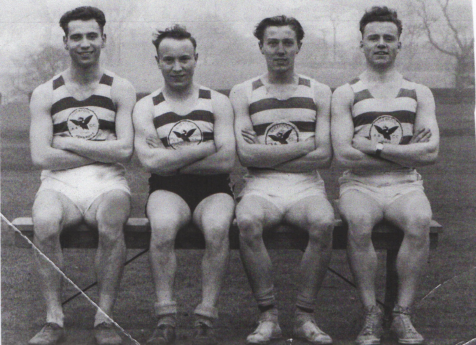 (photo shows the winning sprint relay quartet who in 1953 took both the Northern and National Junior 4 x 100 yard titles, Jim Railton, Fred Hughes, Geoff Brandwood and Peter Matthews)