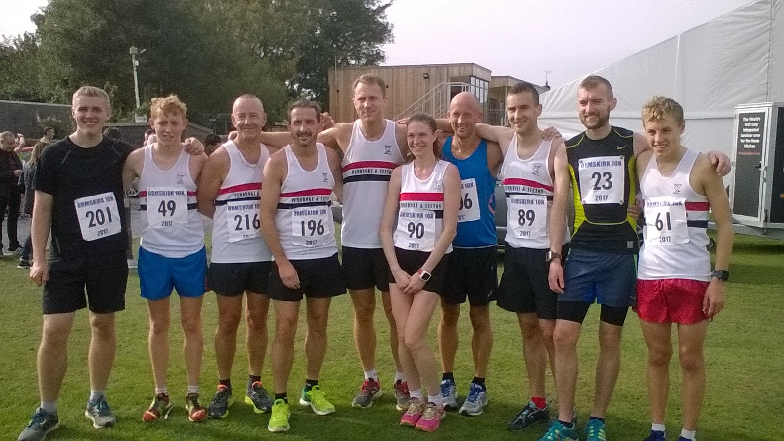 - LPS athletes at Ormskirk 10k L_R Sam Carr, Adam Jones, Mark Hudson, Andy Foster, Mike Gall, Victoria Gilbody,Steve Lennon, Danny Gilbody, Michael Anderson, Dan Jones