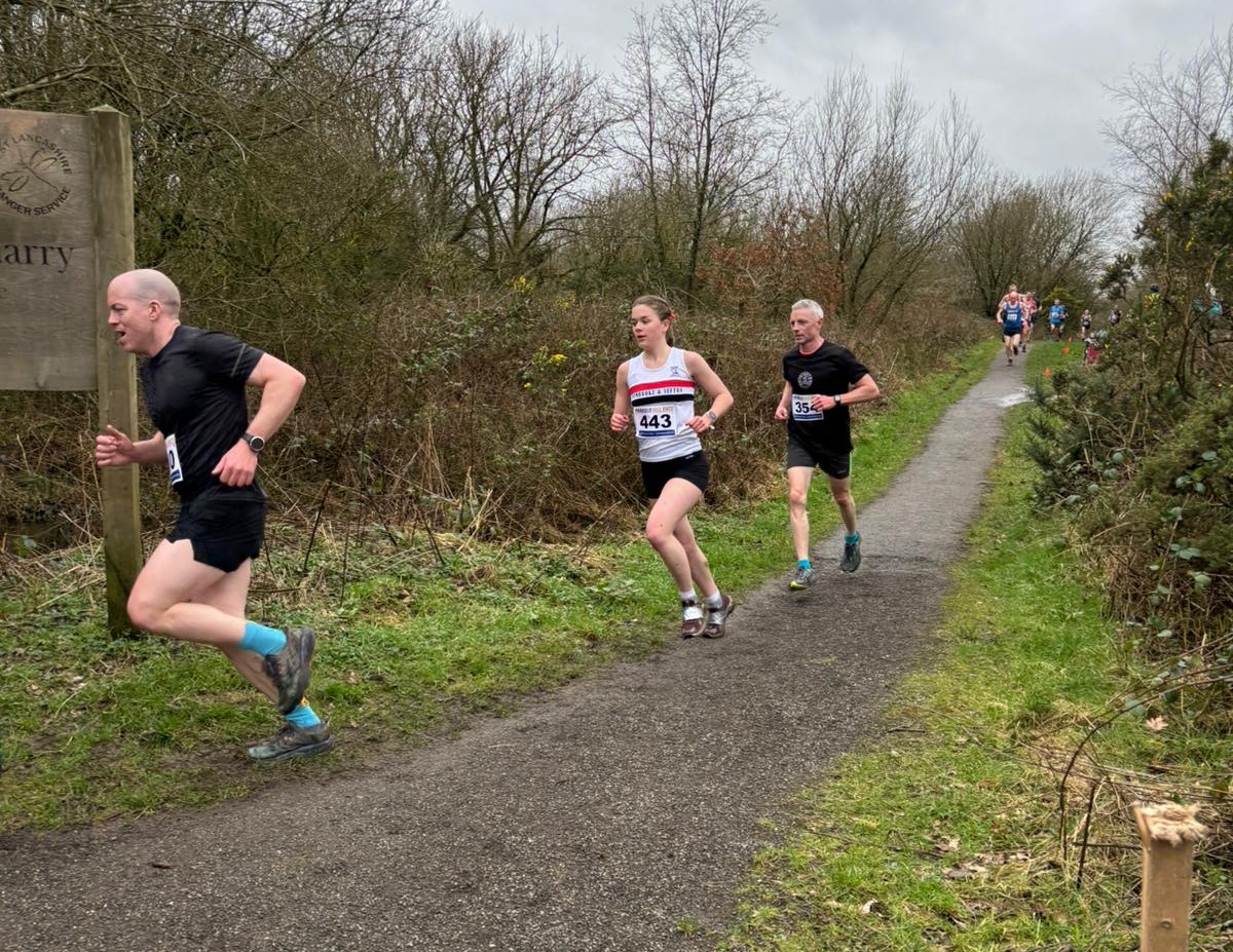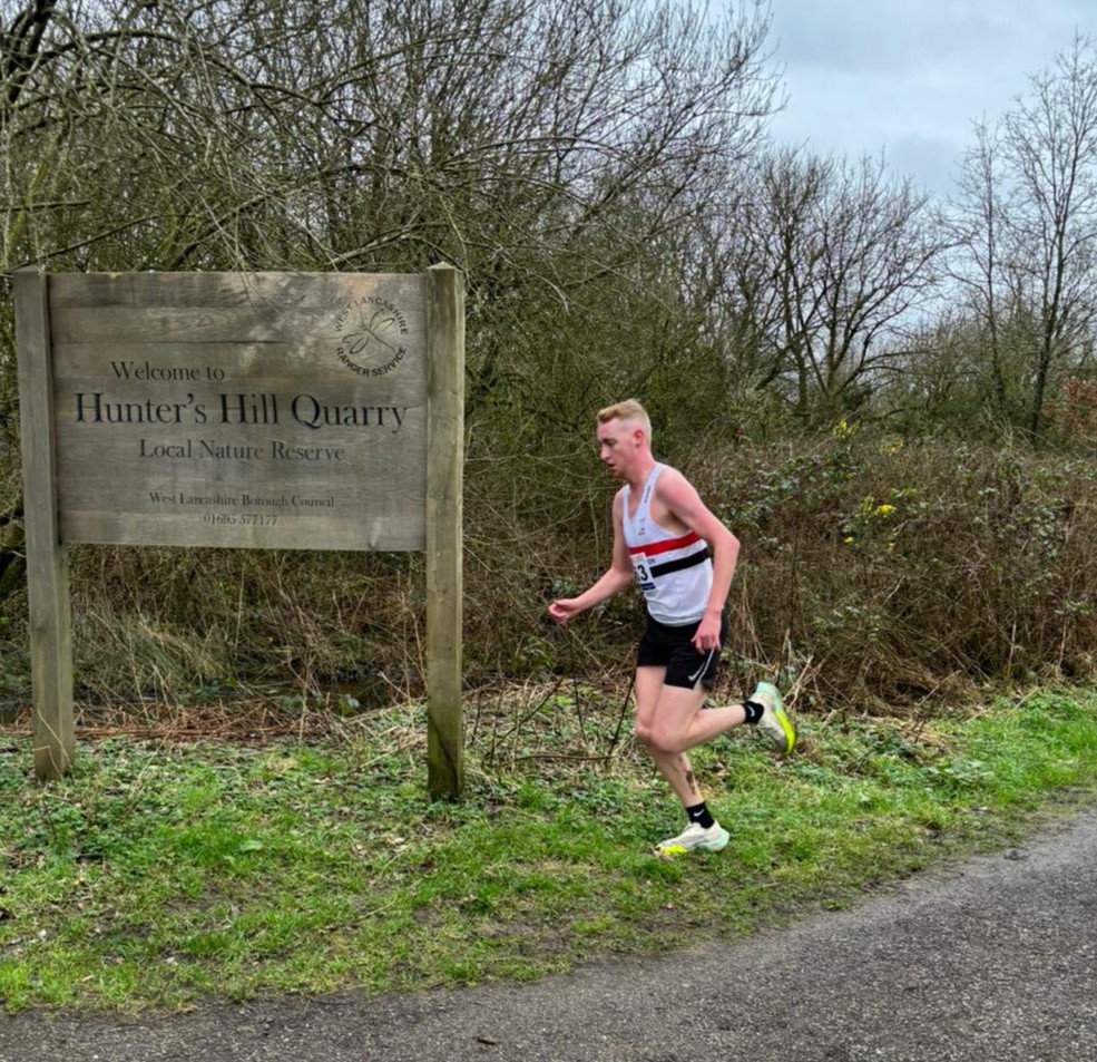 At the Lancaster Lane junction Dan Jones came through with Daniel Miller (Billinge Running Club) hot