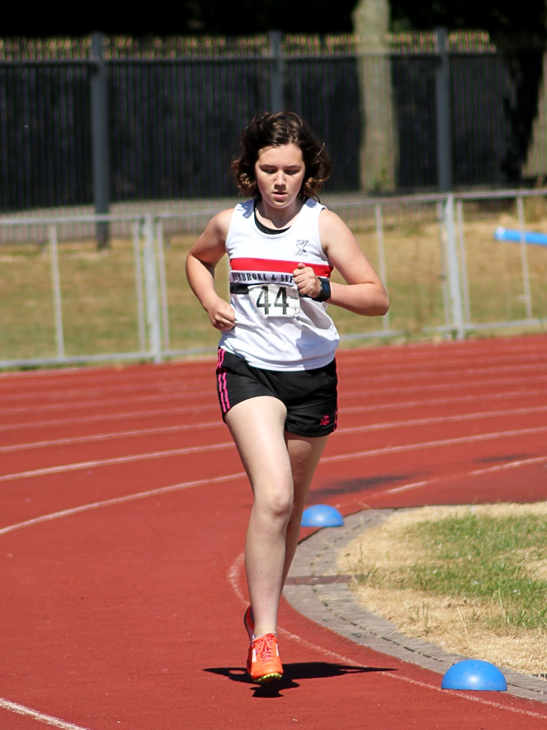 Lucy Townson improved her season’s best with times of 78.5 sec. in the 400m hurdles and 65.7 in the 400m flat, while Maddie Firth Cook produced two pb’s in the same events with times of 79.1 and 69.8. Two of the middle distant girls doubled up with Vicki Gilbody running the 1500m (5:26.2) and 3K (11.19.7) and Harriet Foley the 800m (2:41.8) and 1500m (5:46.1). Where the club was short, Beth Swift filled in and her contributions in the 800m, high jump and long jump, along with Dave McComb 2nd place finish in the ‘B’ pole vault, ensured the club finished in third place.