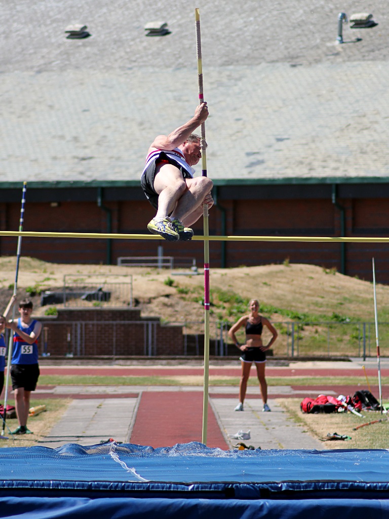 Blackpool provided perfect weather conditions, even if the track was in urgent need of improvement. On the day, veteran and multi eventer, Mark Line, was the club’s main scorer. Mark has lost none of his enthusiasm or competitiveness and took part in five events, even if the first two were on at the same time & at opposite ends of the track. Mark won the hammer event (32.37m) before claiming 4th place in the pole vault (2.30m). In addition he claimed maximum points in the discus (34.48m) and ‘B’ shot (9.46m) and 2nd place in the ‘B’ javelin (38.04m). In total he accrued a magnificent 32 points for the club. Not far behind was 20 year old Jenny Pyatt, with first place in the discus (42.11m) and javelin (32m) and second place in the shot (9.91m). There were valuable contributions from other members of the throws group with Dave Brown first in both the ‘B’ hammer (26.36m) & discus (30.43m), Will Hynd 3rd in the javelin (40.05m), Jess Groves 2nd in the hammer with a new pb of 33.90m, 3rd in the ‘B’ javelin (19.95m) & 3rd in the ‘B’ shot (7.91m). Nicola Swift completed the trio of female throwers with 4th place in the ‘B’ hammer (12.50m) & discus (14.21m).