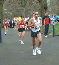 | Nathan Vengdasalam wins Halton Bridge Race Showing that he enjoying being 40 Nathan once again showed the younger athletes how it is done when he won the popular Halton Bridge 5 mile race on Easter Sunday. Although given a race by a strong pair of Bolton athletes Nathan showed his experience as he added yet another local road to his impressive list over the years. No results site known as yet. 11 April 2004 |