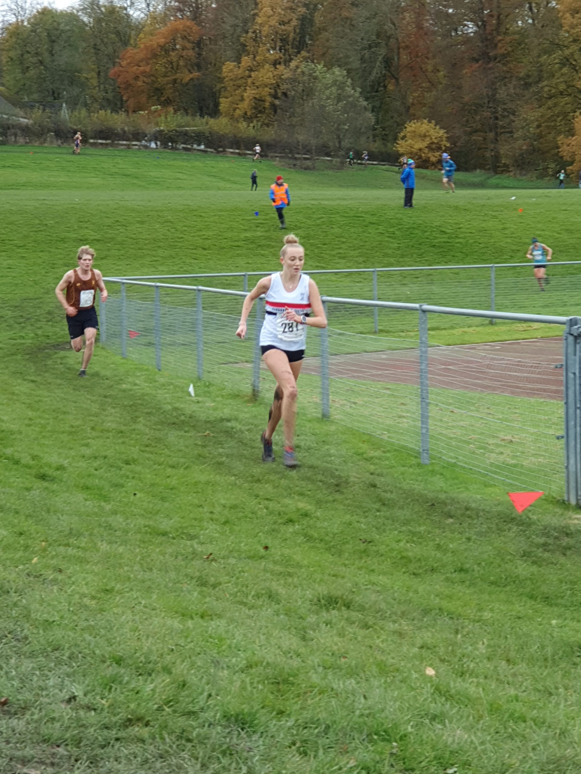 Tom Henderson started the day as soloist in the under 11’s breaking fresh turf to dip best in a photo finish for 4th place in 8:34. In the under 13’s, Megan Lloyd (13th in 12:31) muddied her spikes for the first time leading home a girls trio including Eve Maund (26th 13:13) and Amy English (35th in 13:58) soon followed by the boys duo of Issac Dickinson (14th in 12:28) and Matthew Carroll (33rd in 14:38).
