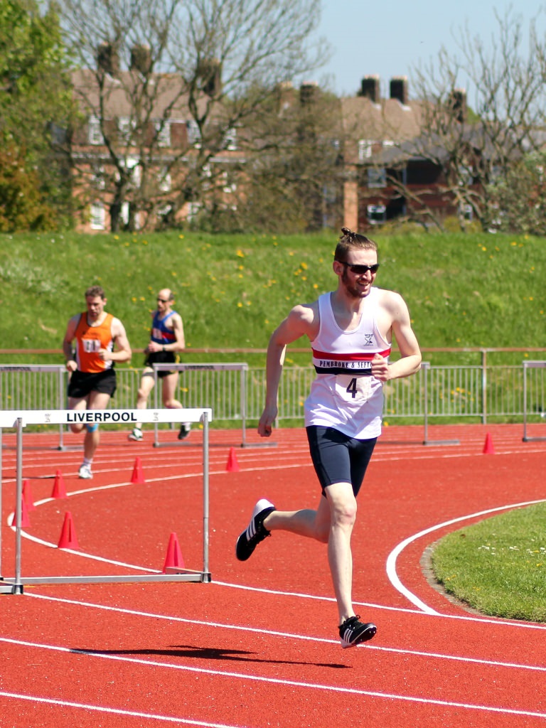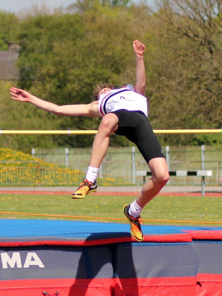 The meeting started on a high with maximum points achieved in the women’s long jump. Lauren Lewis won the ‘A’ event (5.38m) and a personal best from Erin Birchall (5.25m) won the ‘B’ event. Matt Ingram continued his excellent form in the jumps with victory in the long jump (6.86m) and triple jump (13.33m). He was well supported in the triple jump by the ever improving Marcus Bathie with a leap of 10.22m which clinched 2nd place in the ‘B’ event. Marcus also finished 2nd in the 400m hurdles with his best ever time of 64.9 sec. Owen Southern’s leap of 1.85m in the high jump was only good enough for second place but Tom Kwissa won the ‘B’ event with 1.75m.